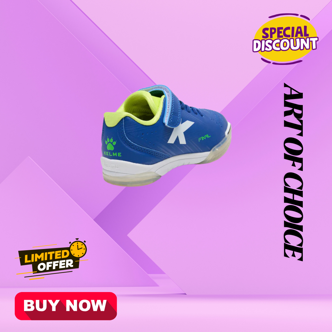 New design for the Final Indoor Elastic children’s indoor soccer shoes in blue, the perfect shoe for their first adventures in indoor soccer. Designed with kids in mind, these shoes combine safety, comfort, and ease of use, so they can focus solely on enjoying the game.