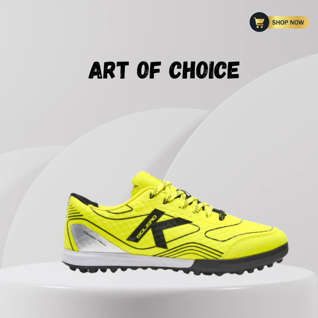 Yellow football boot. An evolution of our Goleiro model, a lightweight model designed for enjoying football with your friends. Exclusive Kelme Turf sole for playing on artificial turf. Thanks to its technologies, it adapts to any surface, even hard ground.