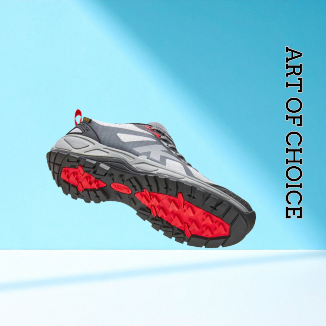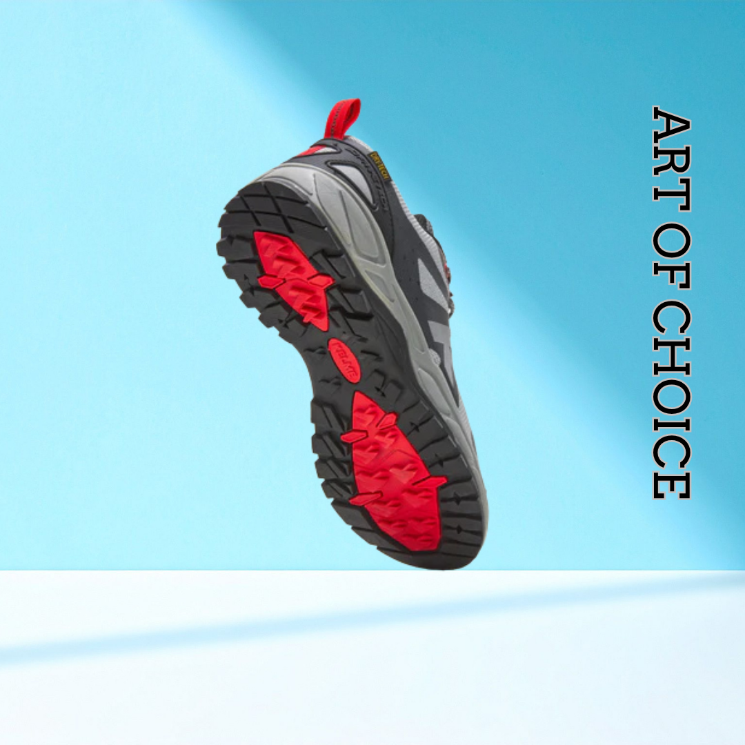 Our Track shoes, in gray, take our trail collection to the next level. They incorporate an innovative waterproof membrane that ensures your foot stays protected when the shoe comes into contact with water, protecting it from adverse weather conditions.