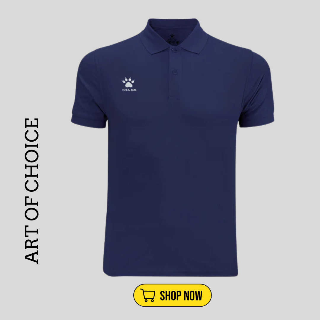 NAVY unisex short sleeve polo shirt. This KELME polo shirt is a timeless garment that gives you a classic look with a modern twist. Its high-quality fabric helps keep you cool and comfortable throughout the day. It has a slim fit and features a fold-over collar that incorporates a two-button placket to maintain a formal style without sacrificing maximum comfort. Made 100% Polyester. Wash cold, do not apply heat.