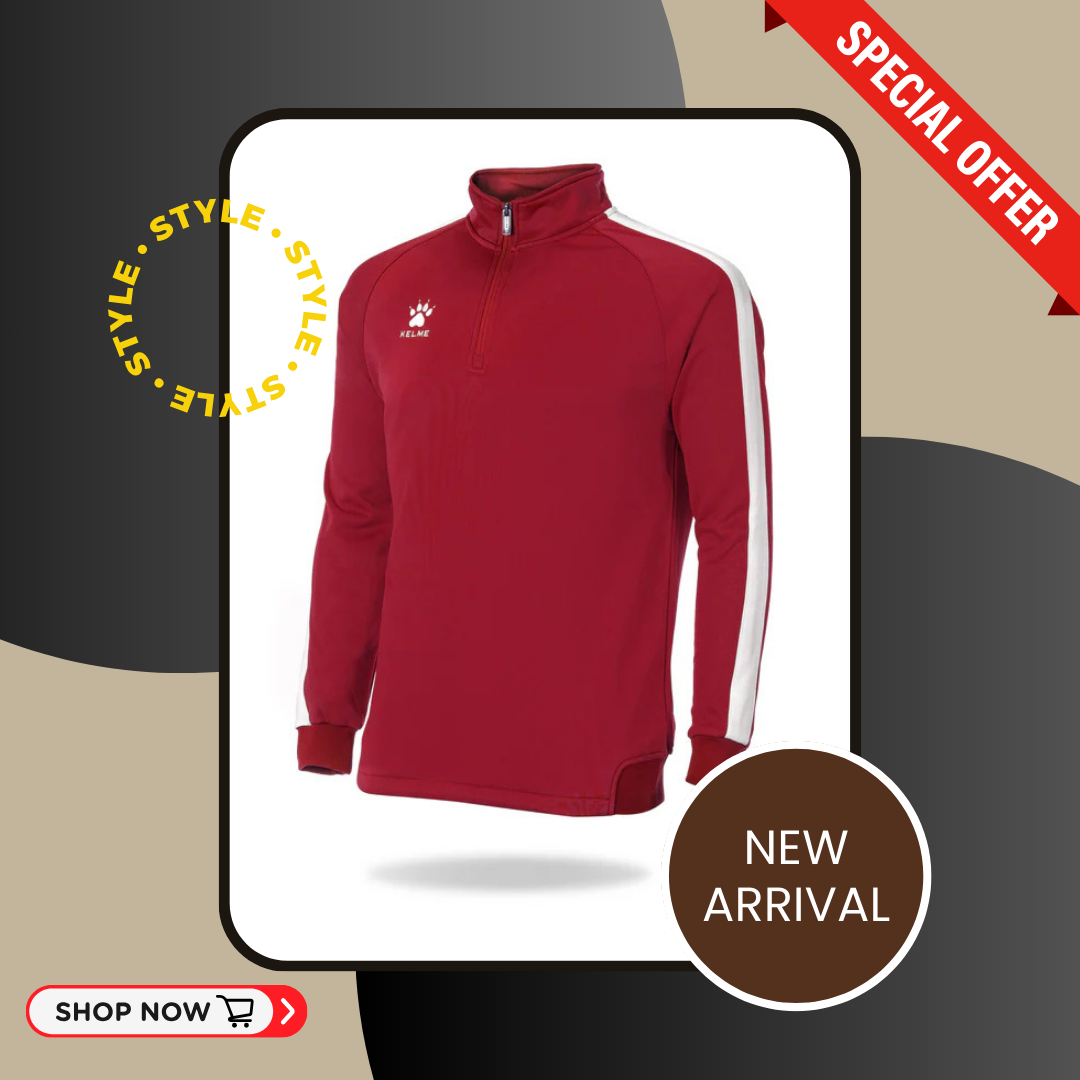 RED training sweatshirt. Take your workout to the next level with this Kelme sweatshirt. It features a 3/4 zip so you can adjust it to your liking depending on the weather. The hip hem, elastic cuffs, and its excellent breathability maximize comfort during sports. You can also wear it for more casual looks thanks to its versatile design. Made of 100% polyester. Wash cold, do not apply heat.